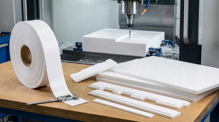 - Se il tuo progetto rientra nei parametri del rotolo (larghezza inferiore a 50 mm e spessore inferiore a 5 mm): Concentrati sulla specifica dell'esatta larghezza, spessore, lunghezza del rotolo e grado del materiale necessari per il tuo pezzo estruso o sfogliato.